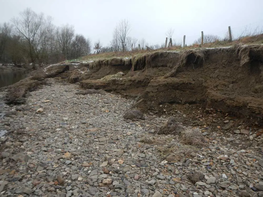 Das Weihnachtshochwasser 2023 hatte diese Arbeiten zunächst zum Erliegen gebracht – aber auch ganz maßgeblich an der naturnahen Gestaltung der bereits bearbeiteten Bereiche mitgewirkt. Im Naturschutzgebiet Obergraben westlich Wickede bildet die Alte Ruhr den südöstlichen Grenzverlauf des Kreises Unna zum Nachbarkreis Soest. Vor dem Hochwasser wurde hier mit dem Aufweiten des Gewässerbetts begonnen. Jetzt danach zeugen weitausladende Kiesflächen von der Schleppkraft der Ruhr. Und auch an den Uferböschungen hat die Ruhr genagt – sicher zur Freude der hier brütenden Uferschwalben und Eisvögel.